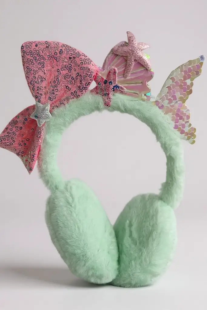Turkuaz Ve Pembe Renk Karışık Figürlü Peluş Kulaklık