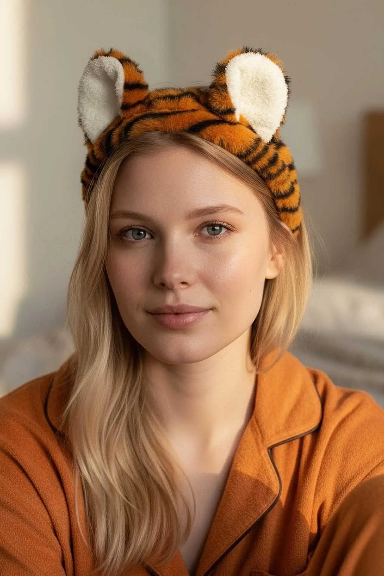 Turuncu Renk Kulak Detaylı Peluş Saç Bandı