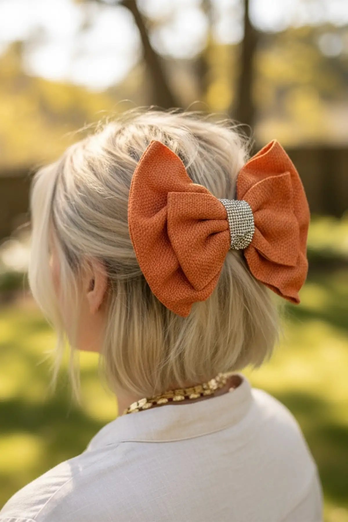Turuncu Renk Kurdele Figürlü Taş Detaylı Otomat Toka