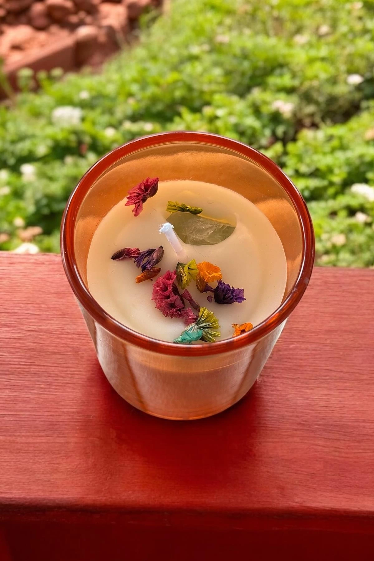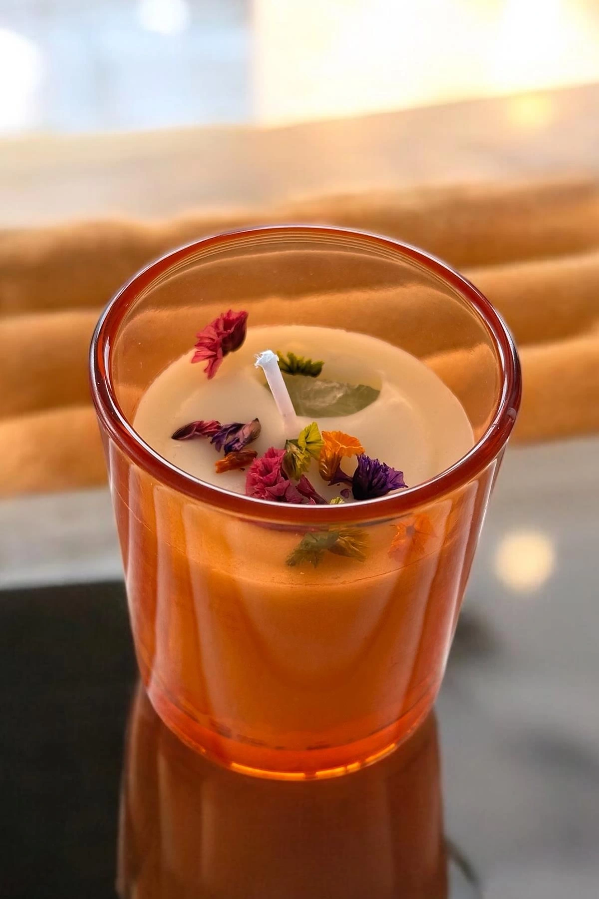 Turuncu Renk Kuru Çiçek Detaylı Mum