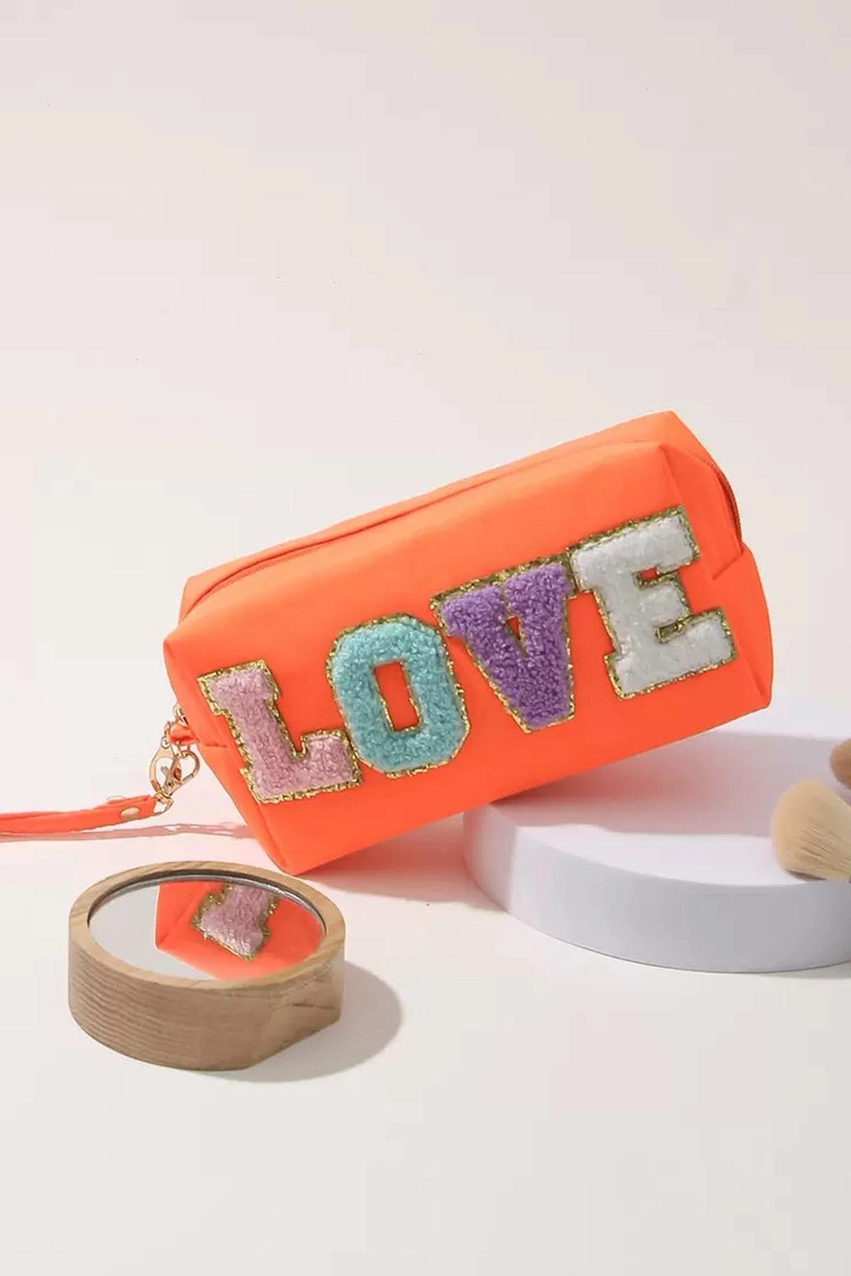 Turuncu Renk Love Detaylı Makyaj Çantası