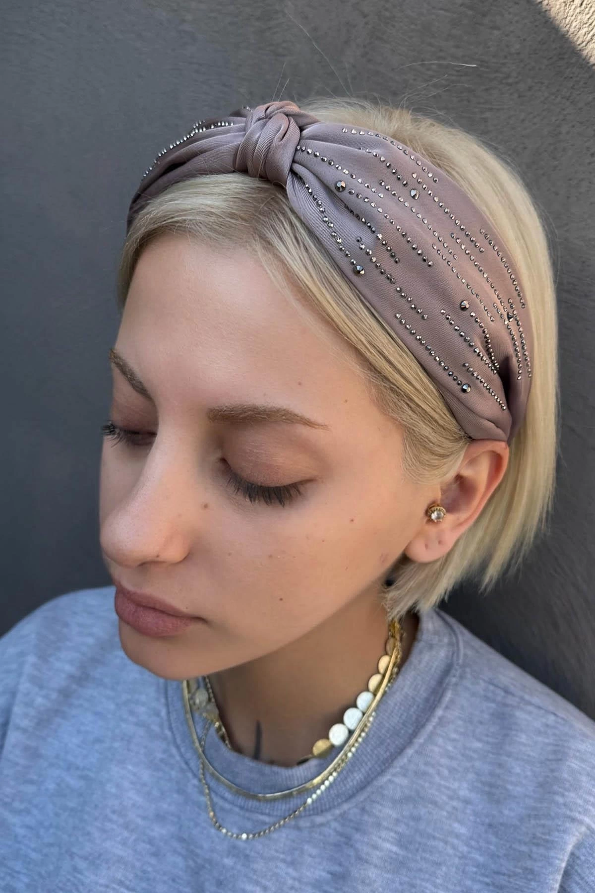 Vizon Renk Düğüm Detaylı Taşlı Taç