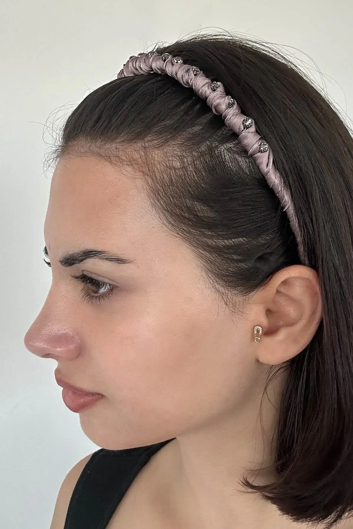 Siyah Renk Düğüm Detaylı Taşlı Taç