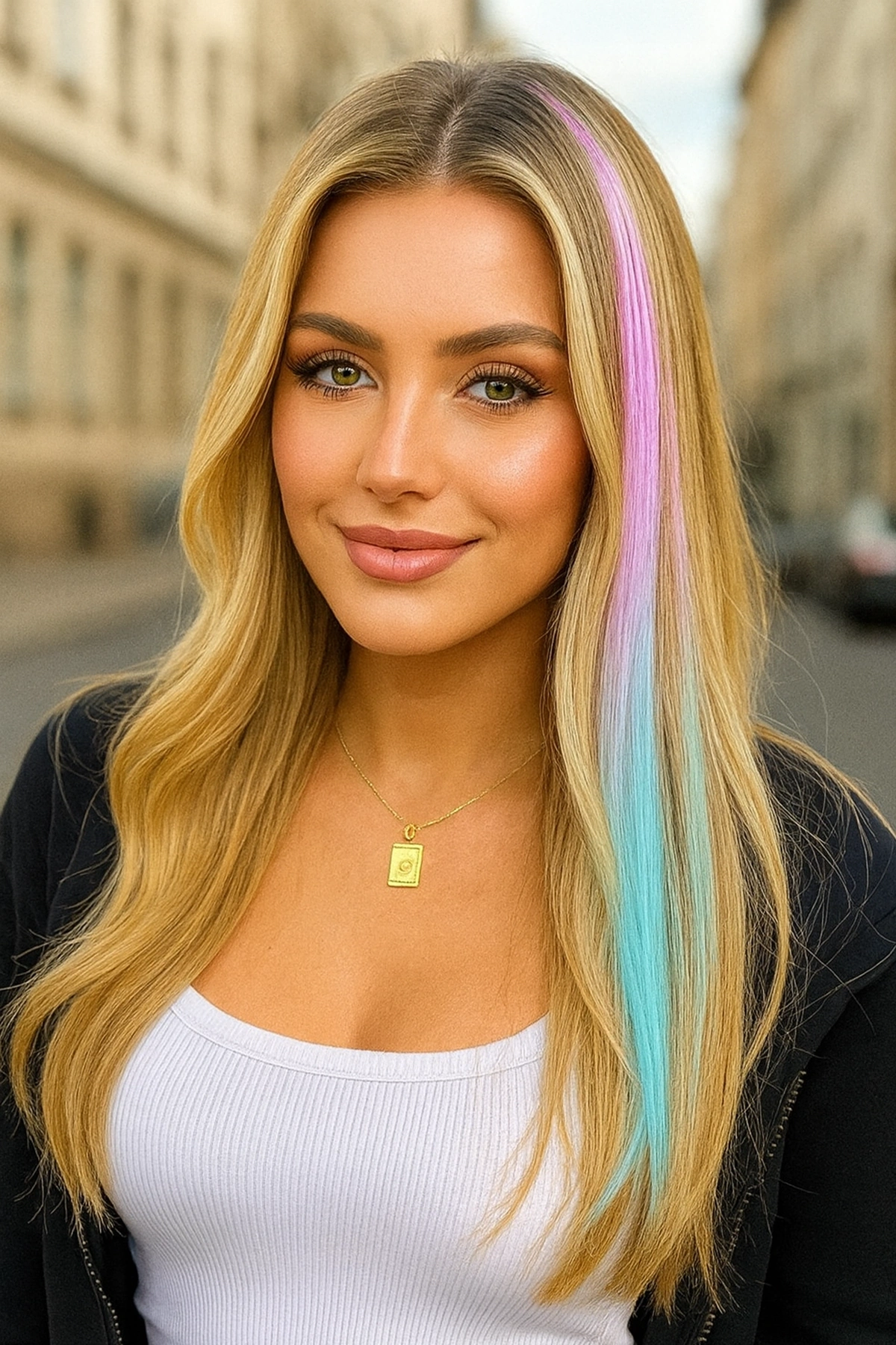 Karışık Renk Simli Yan Postiş Hair Tinsel Shiny Hair (50 Cm)