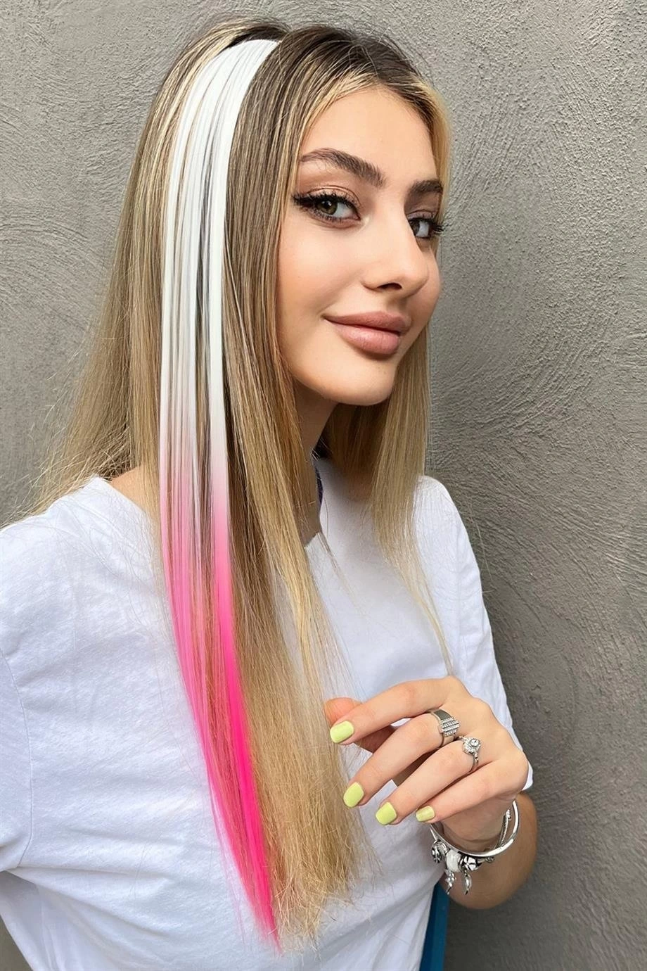 Karışık Renk Yan Postiş Hair Tinsel Shiny Hair (50 Cm)