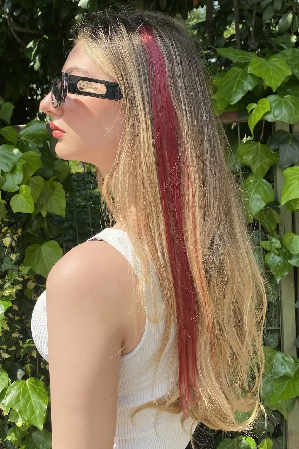 Kırmızı Renk Simli Yan Postiş Hair Tinsel Shiny Hair (50 Cm)