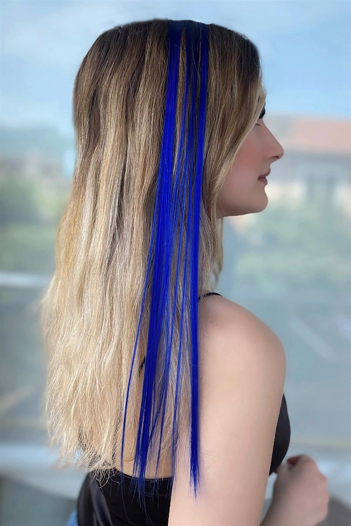 Mavi Renk Ombreli Yan Çıt Çıt Postiş 50 Cm