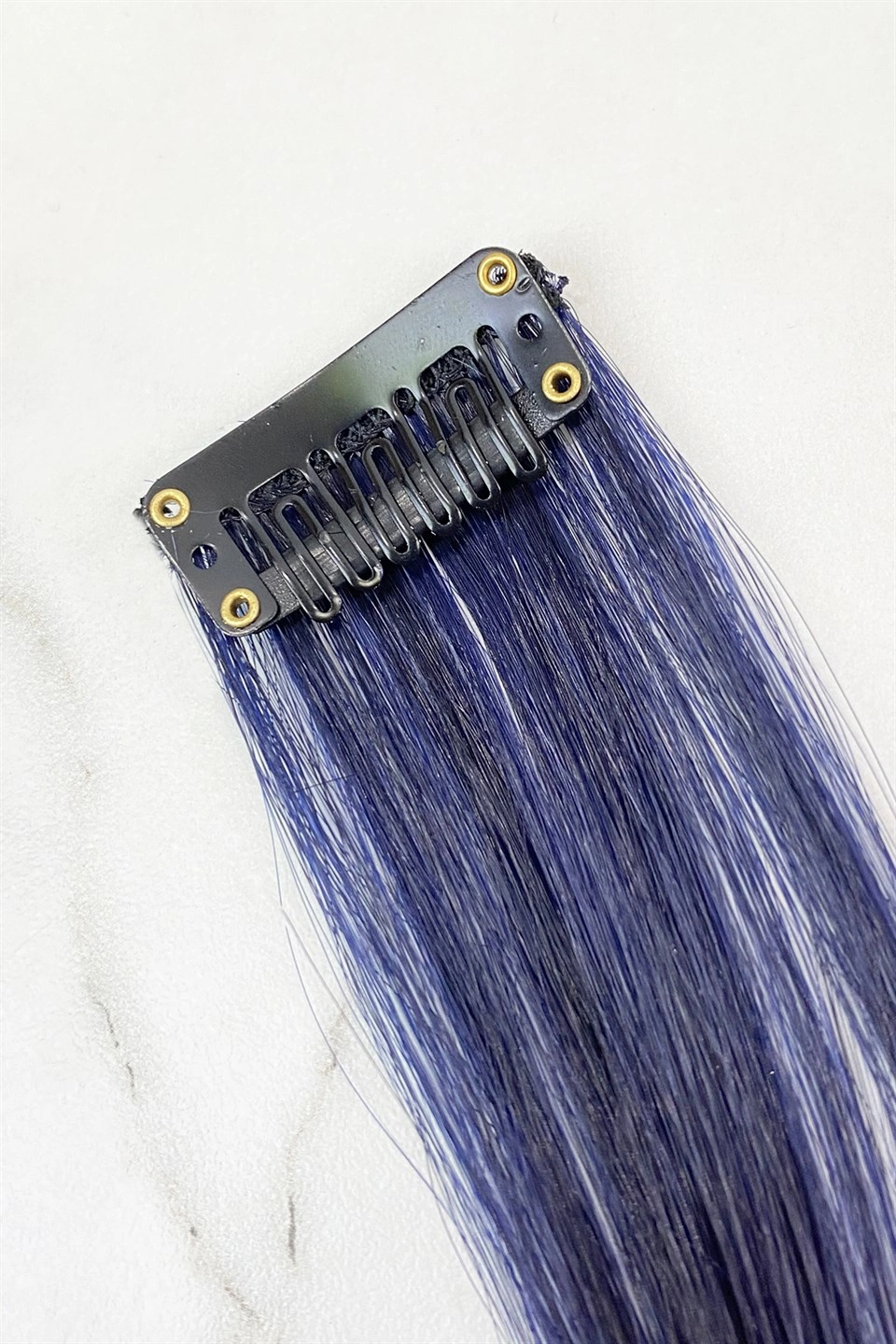 Yan Çıt Çıt Postiş / Lacivert Renk Siyah Ombre/ 50 Cm