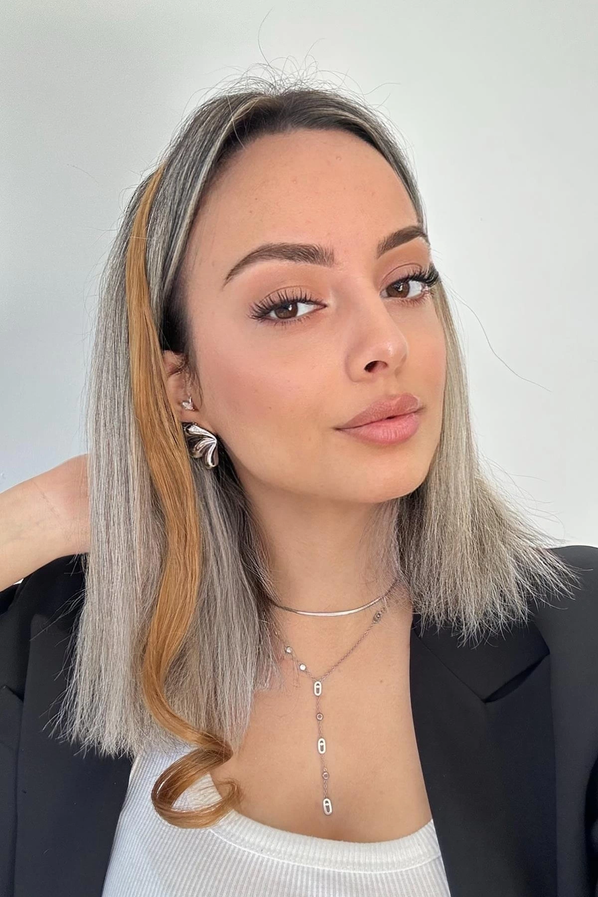 Gümüş Renk Zincir Detaylı Yan Postiş