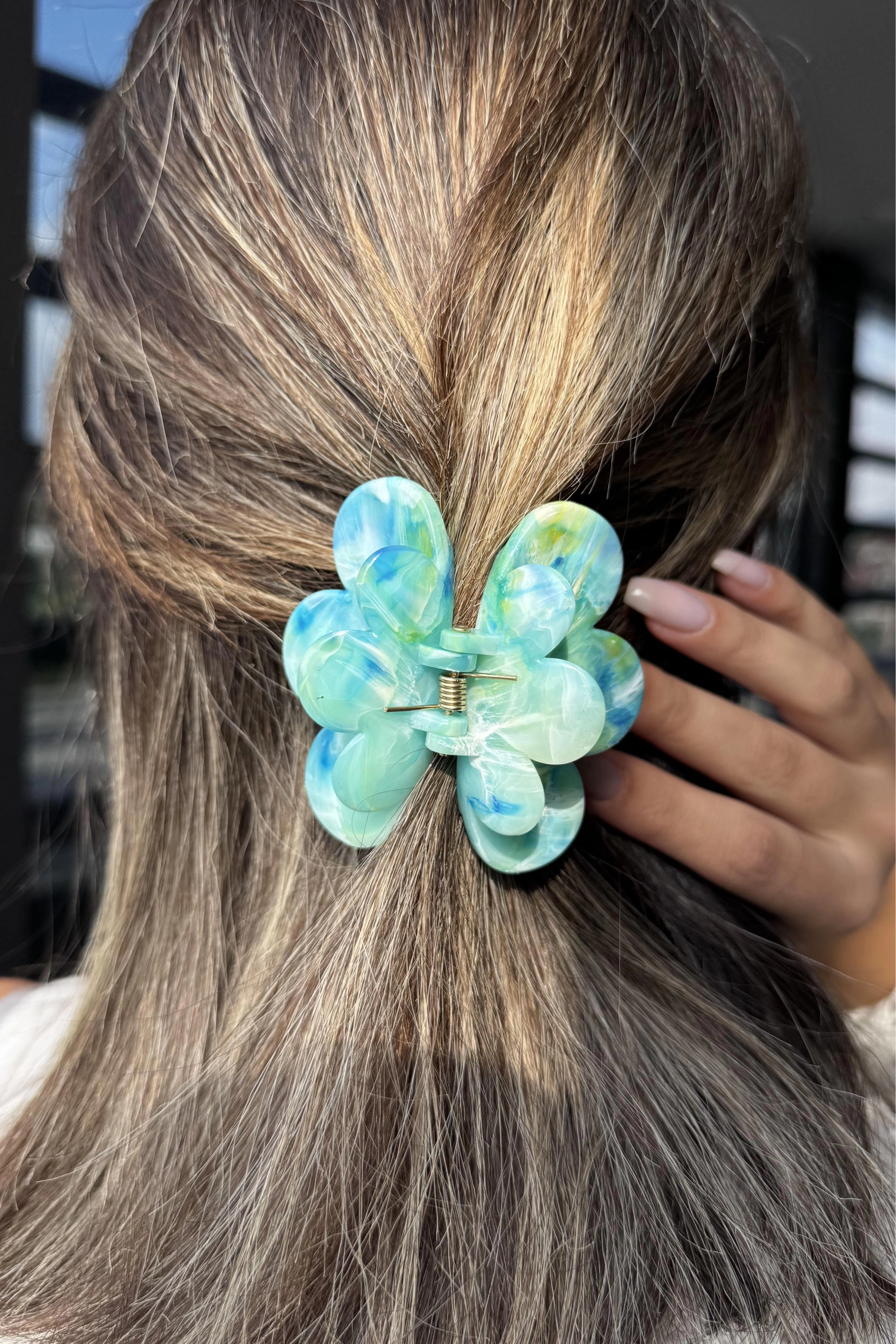 Yeşil Renk Çiçek Figürlü Kemik Mandal Toka