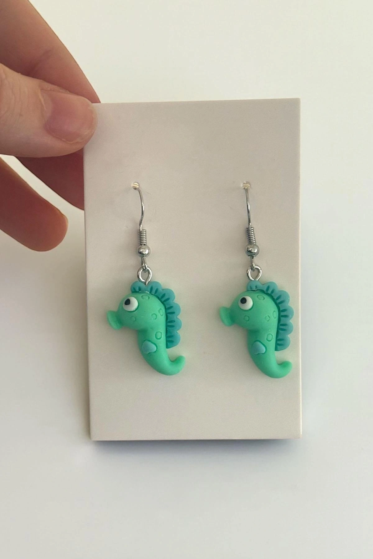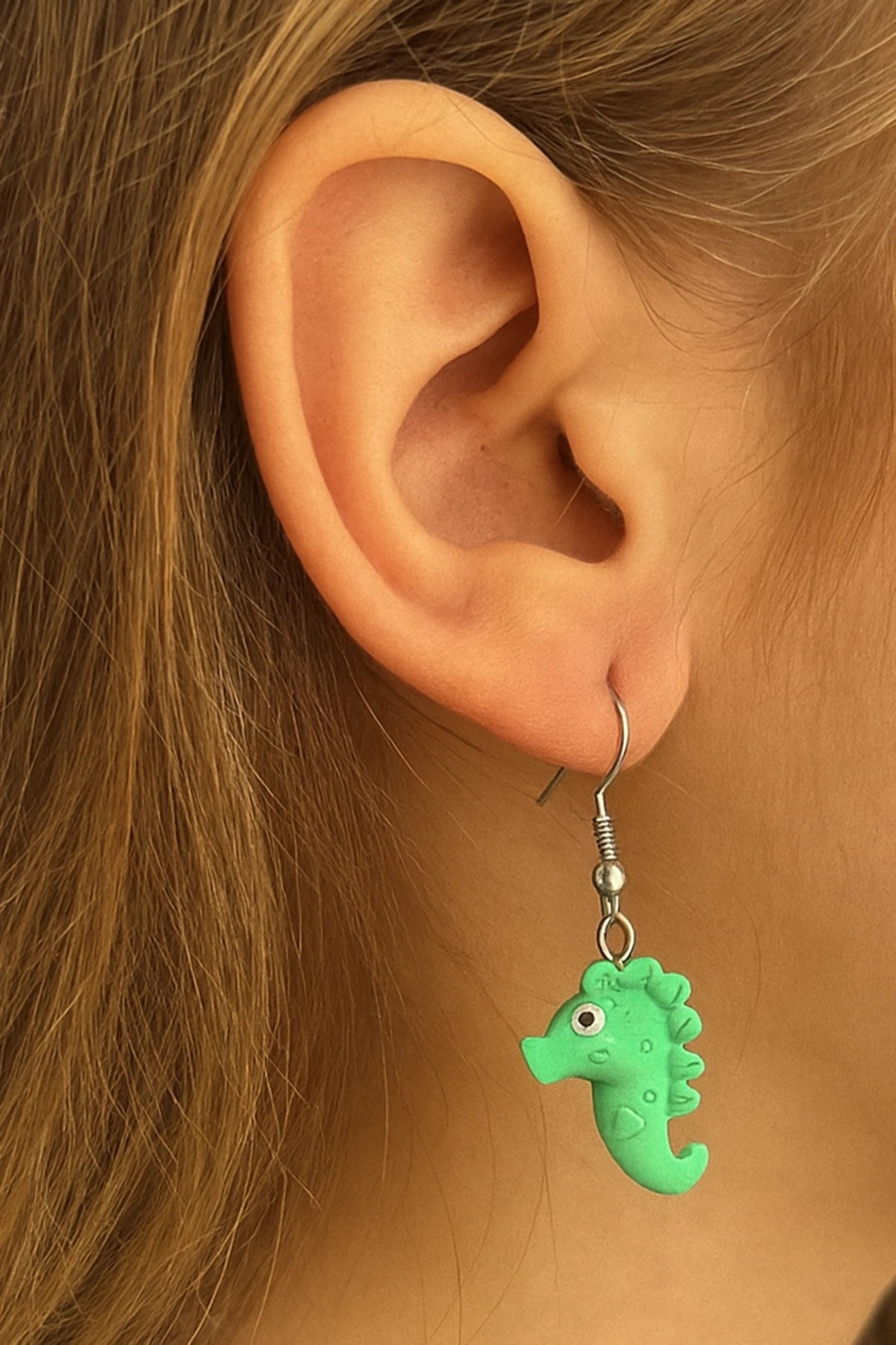 Yeşil Renk Denizatı Figürlü Çocuk Küpe (Çift)