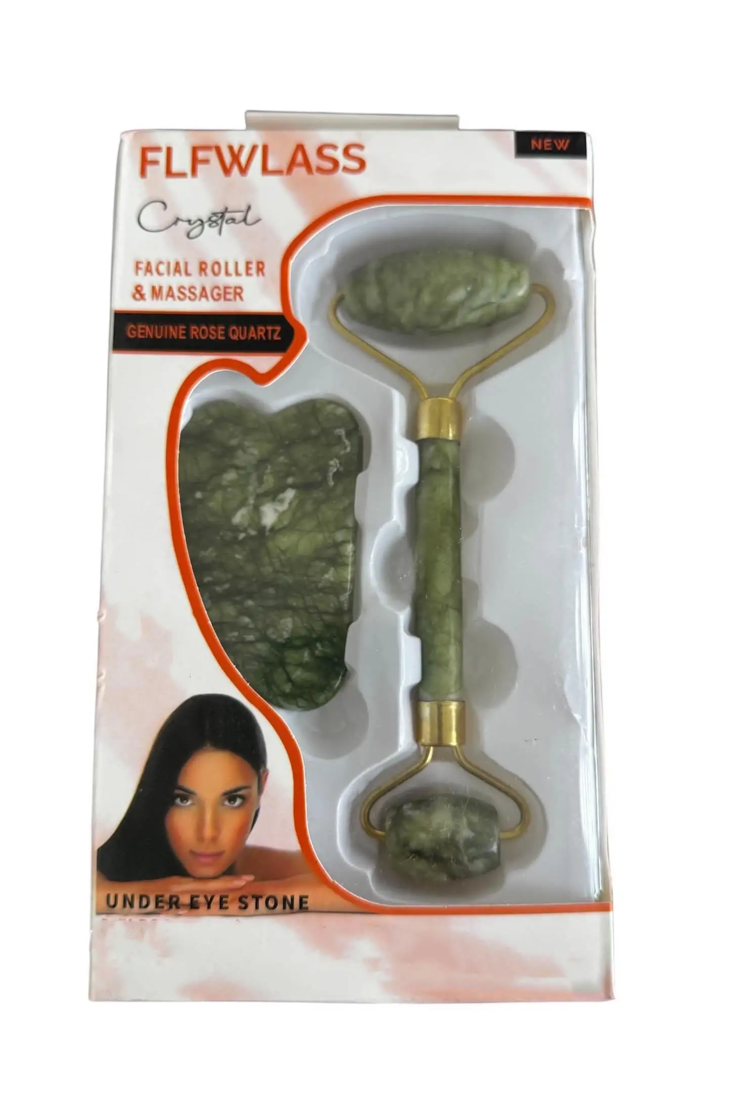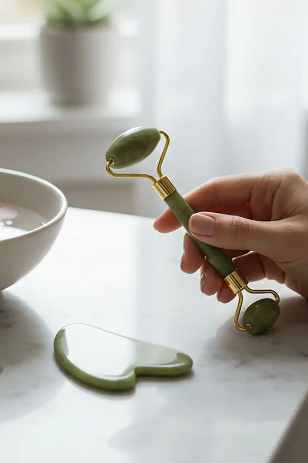Yeşil Renk Doğal Taş Gua Sha ve Roller Yüz Masaj Taşı Seti