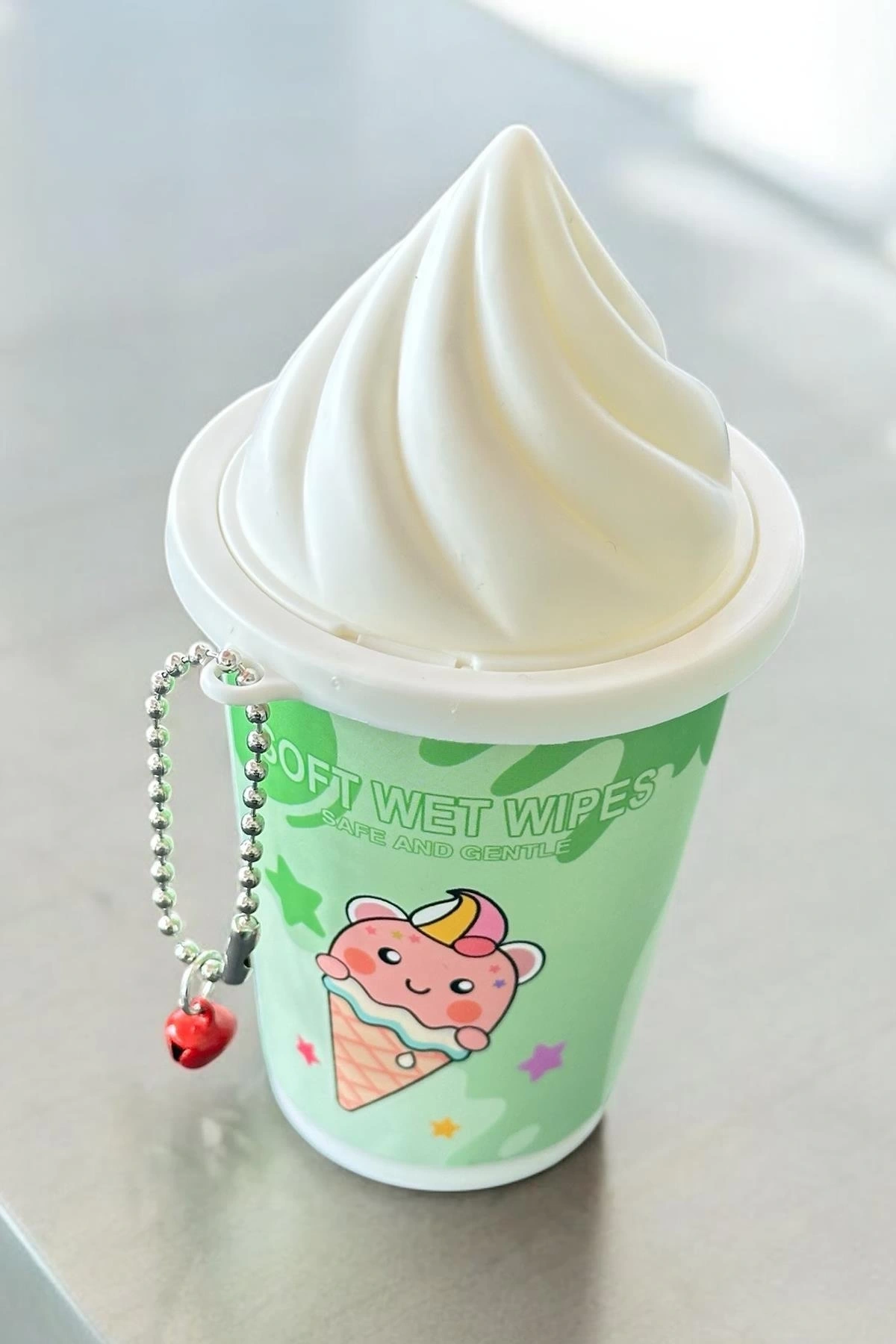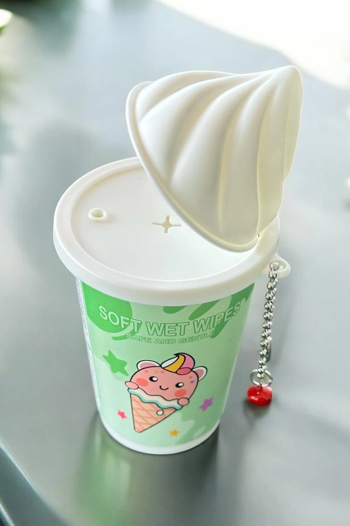 Yeşil Renk Dondurma Figürlü Anahtarlık Detaylı Kutulu Islak Mendil