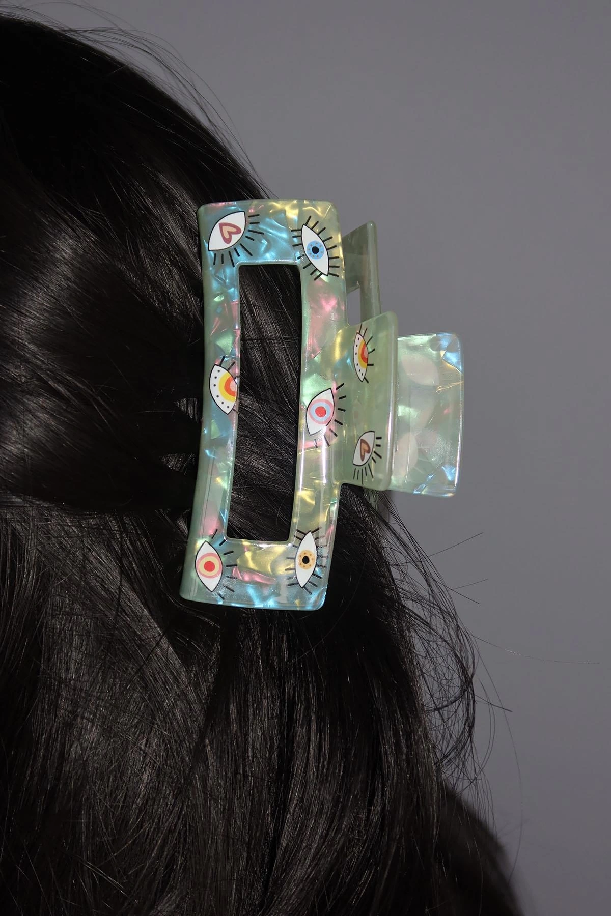 Yeşil Renk Göz Figürlü Kemik Mandal Toka