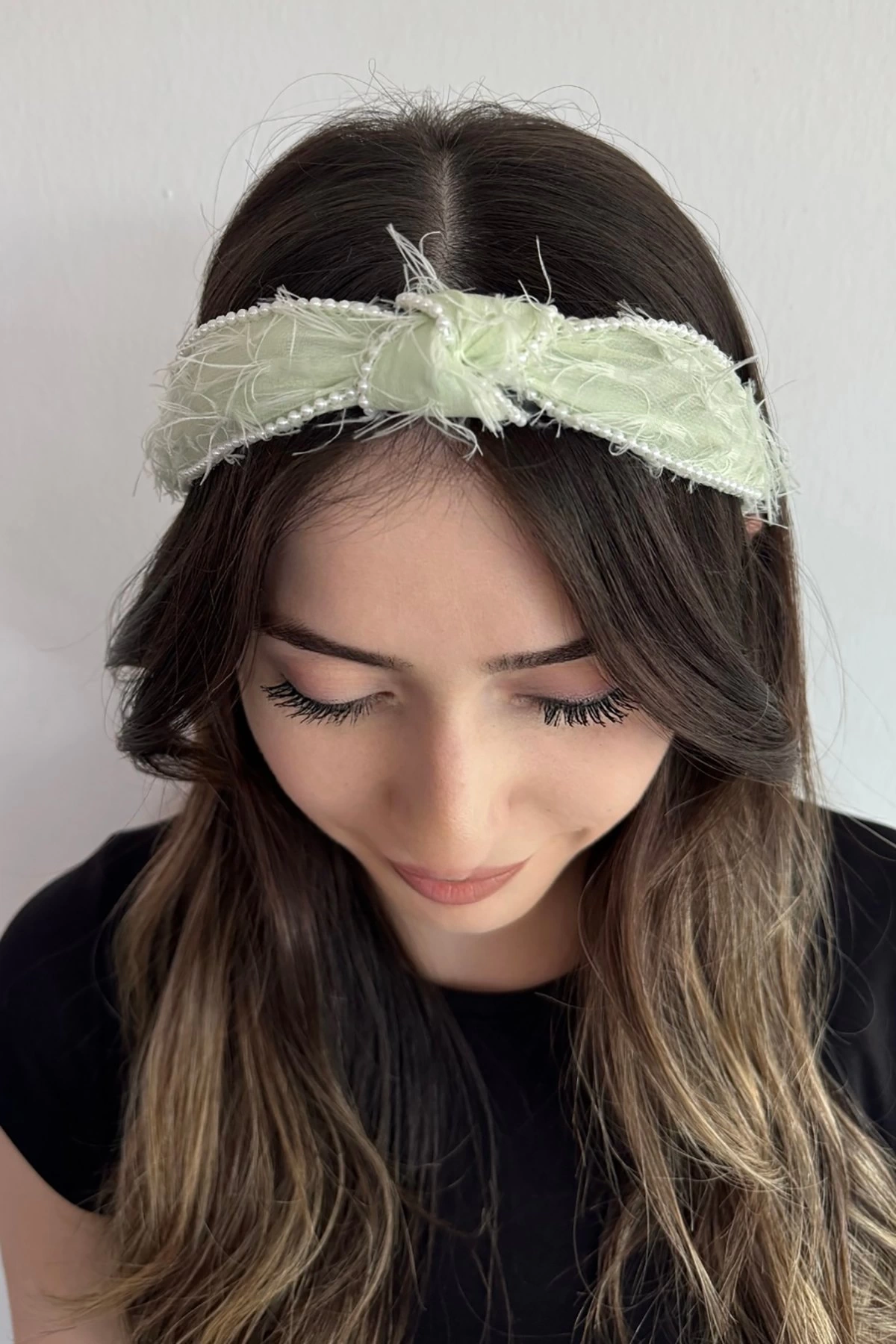 Yeşil Renk İnci Detaylı Taç