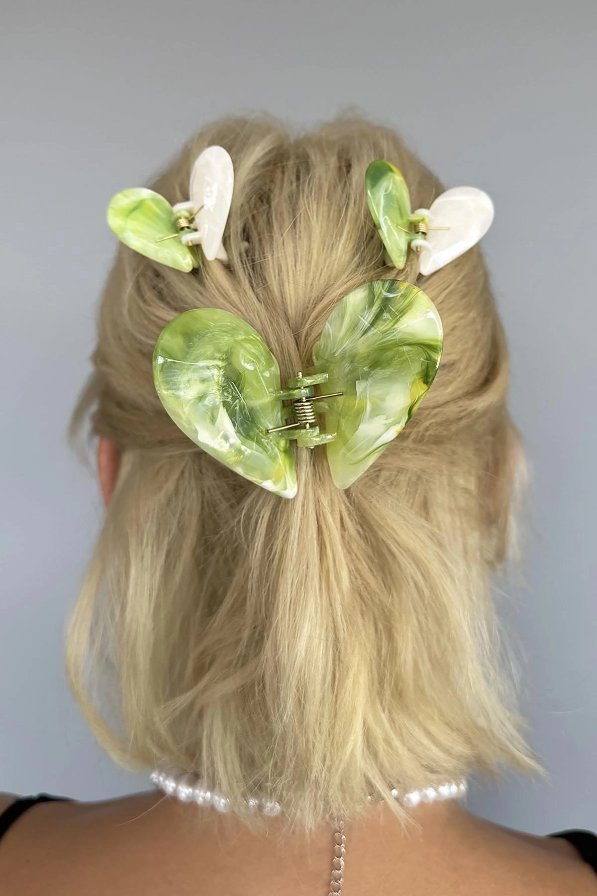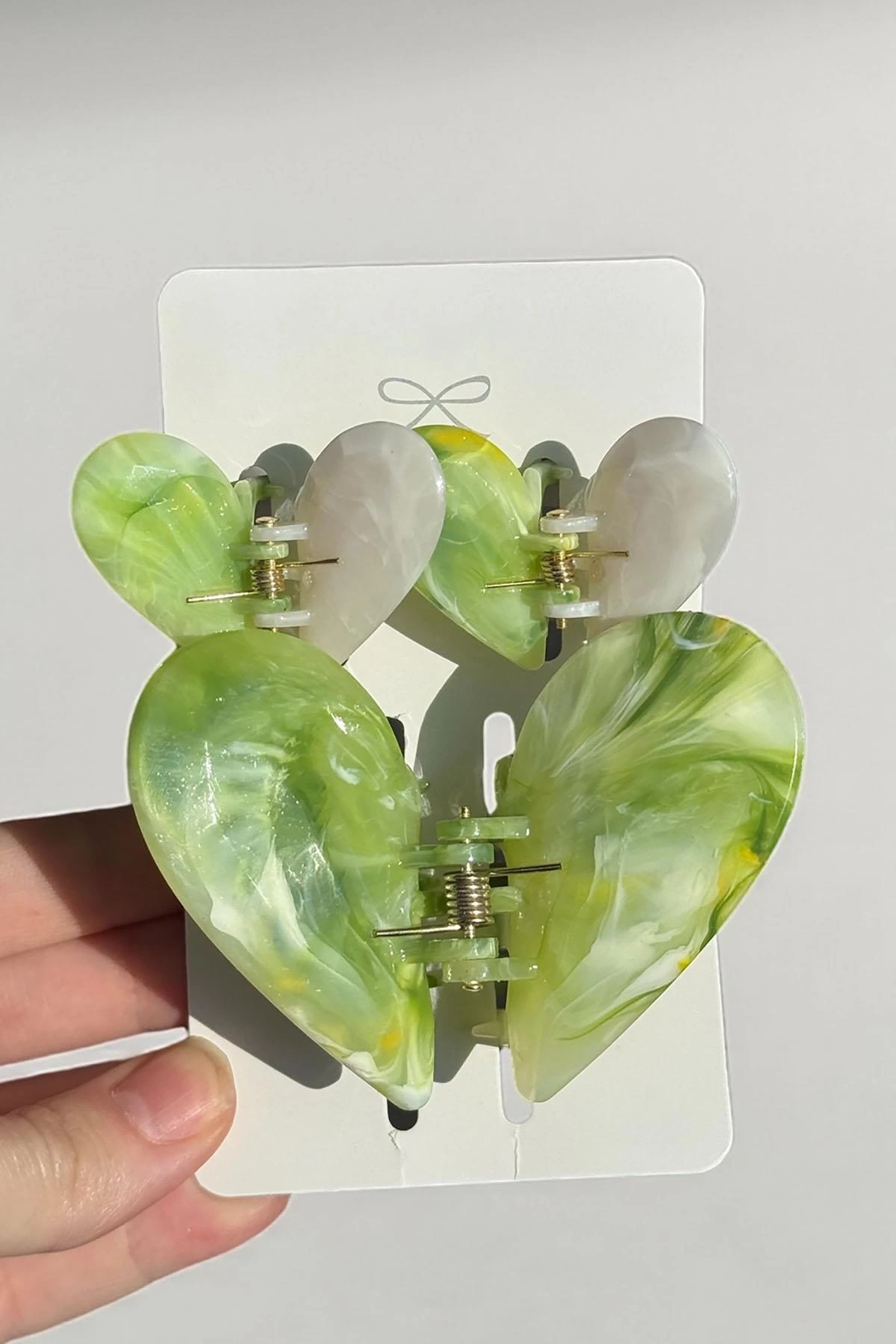 Yeşil Renk Kalp Figürlü 3'lü Kemik Mandal Toka Set
