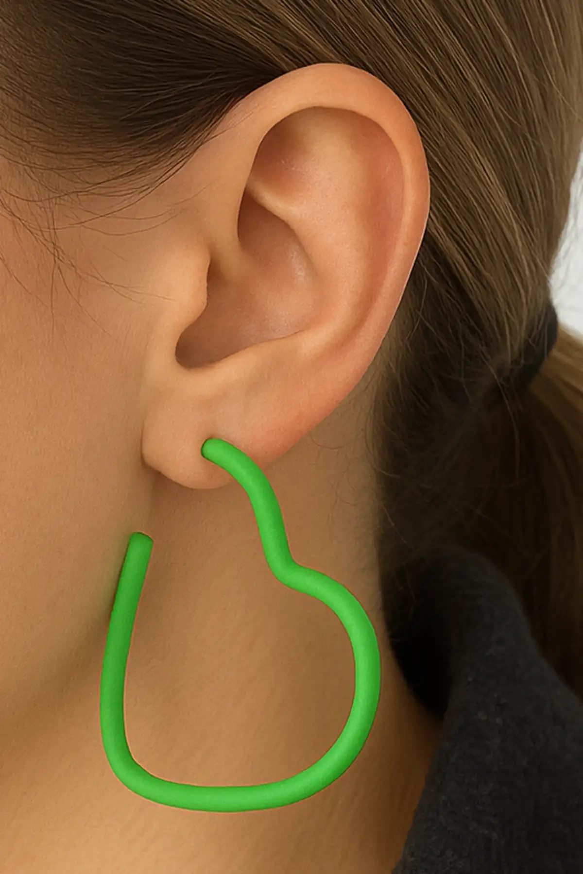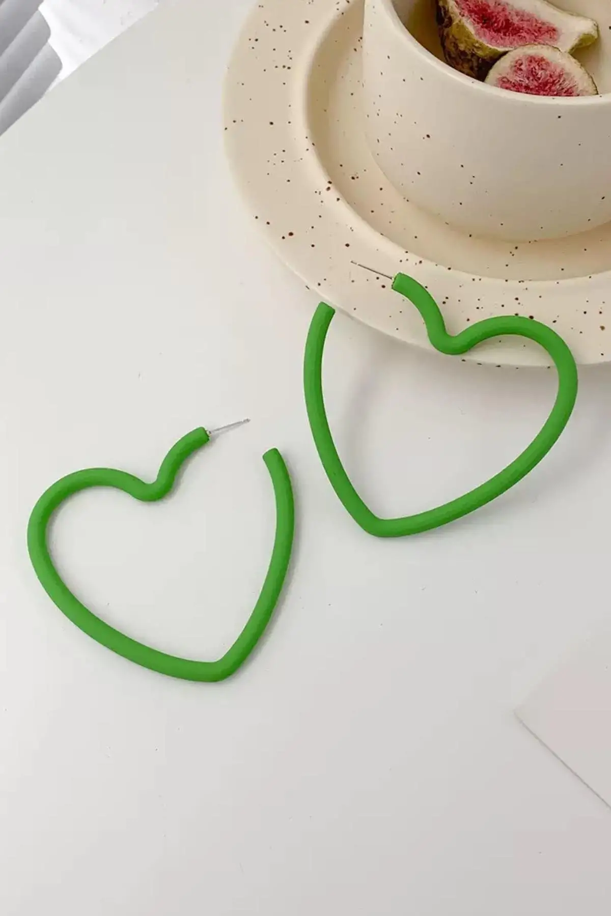 Yeşil Renk Kalp Figürlü Küpe (Çift)