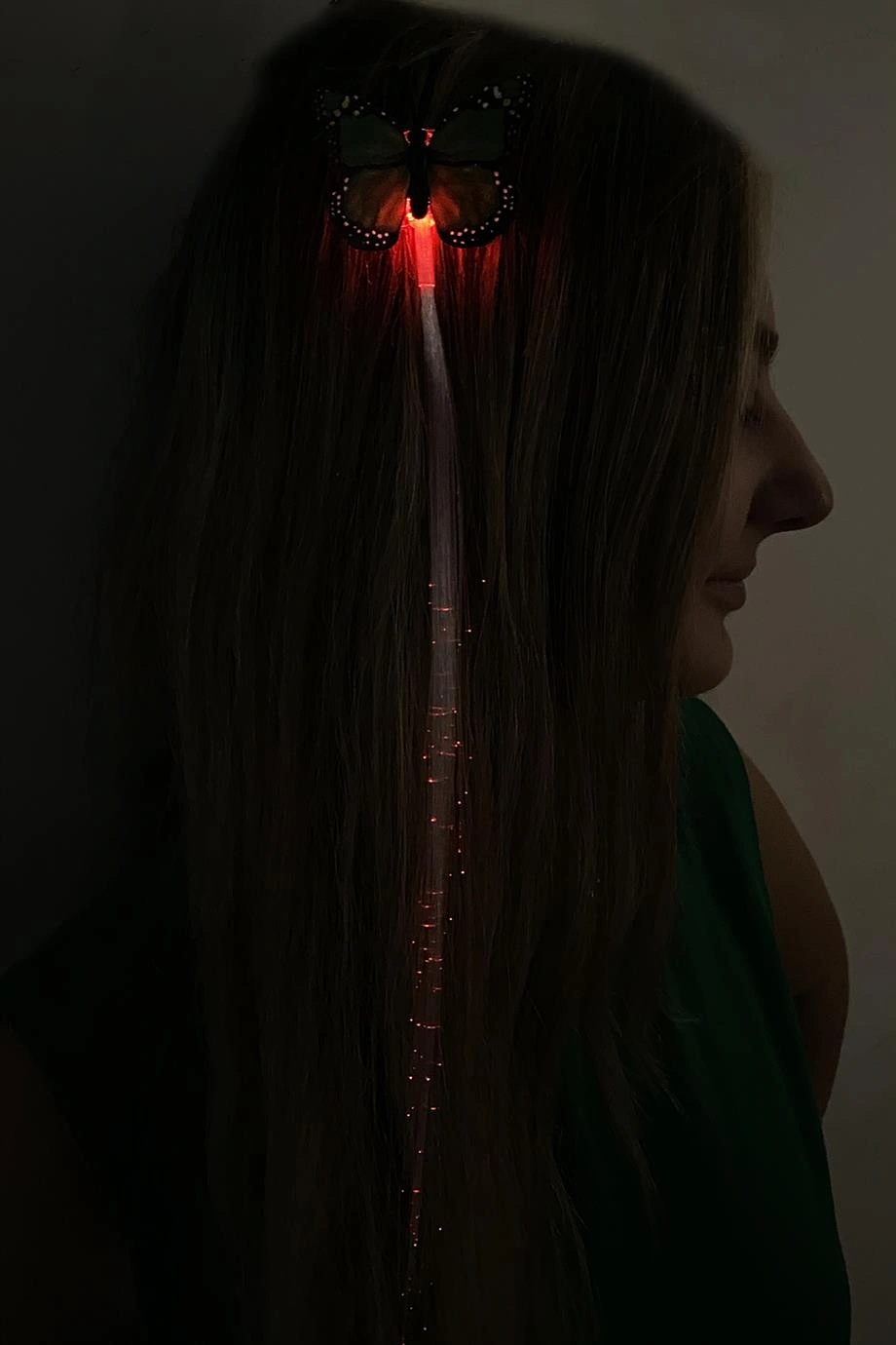 Yeşil Renk Kelebek Figürlü Işıklı Yan Toka