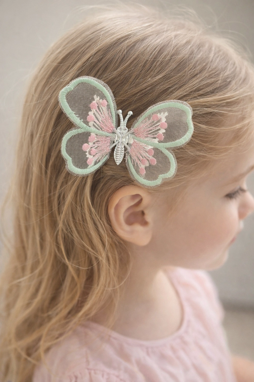 Pembe Ve Mavi Renk Kelebek Figürlü Yan Toka