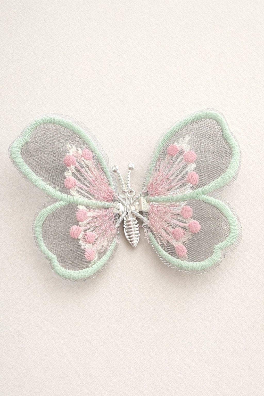 Krem Renk Kelebek Figürlü Yan Toka