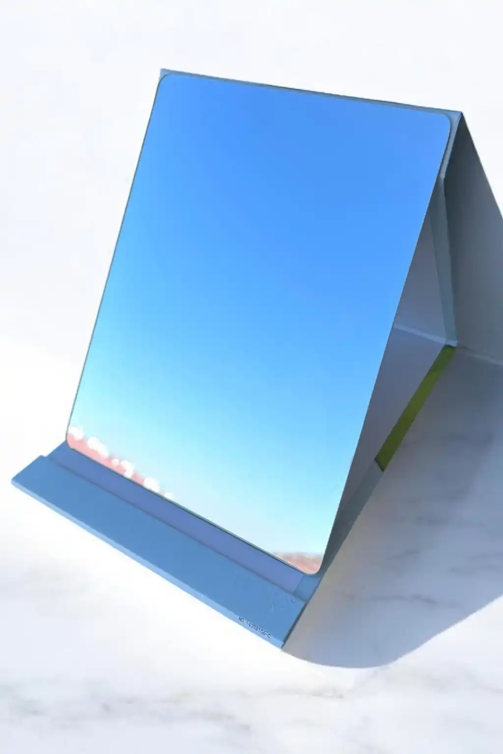 Mavi Renk Leopar Desenli Küçük Boy Katlanabilir Makyaj Aynası