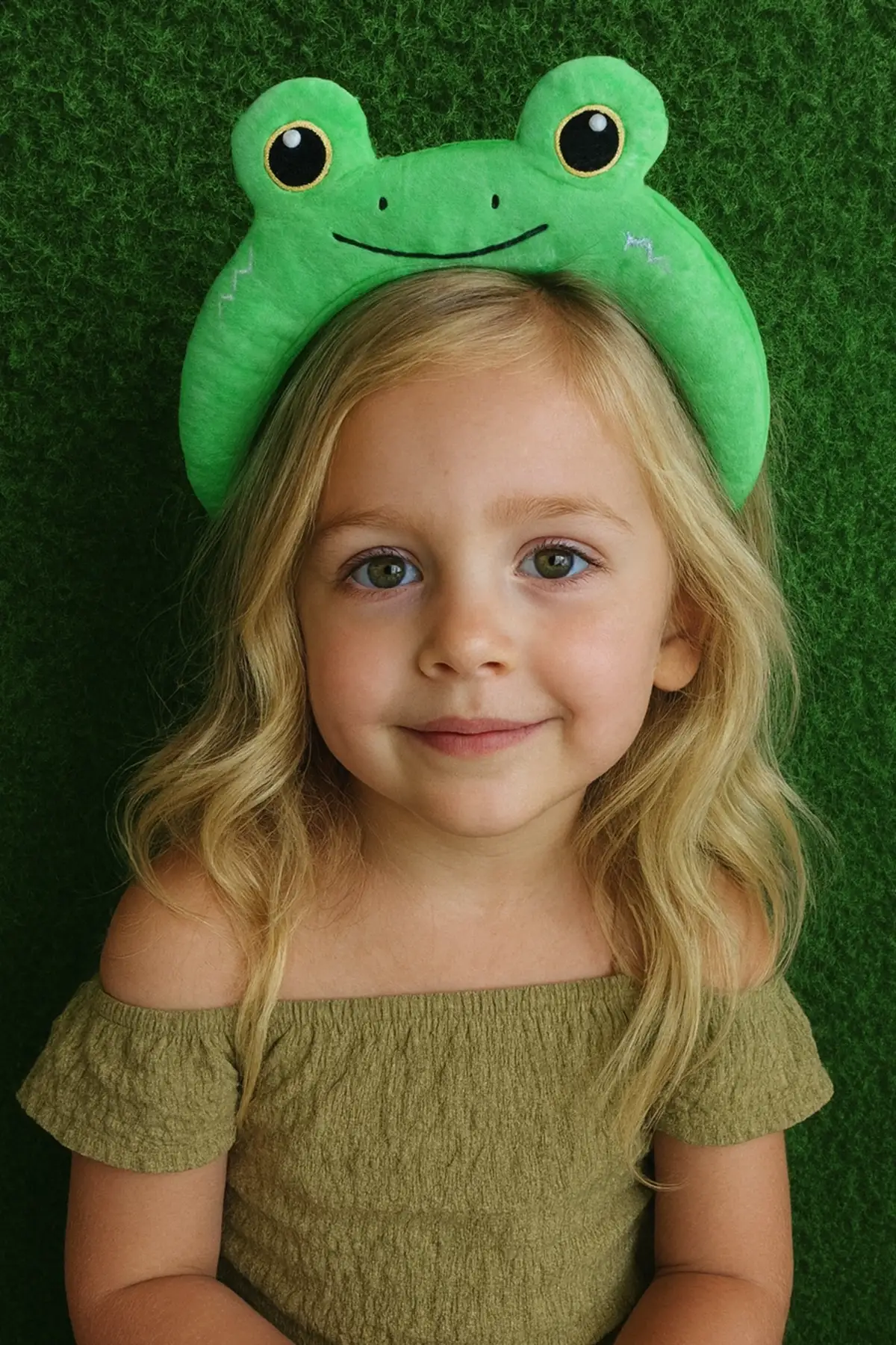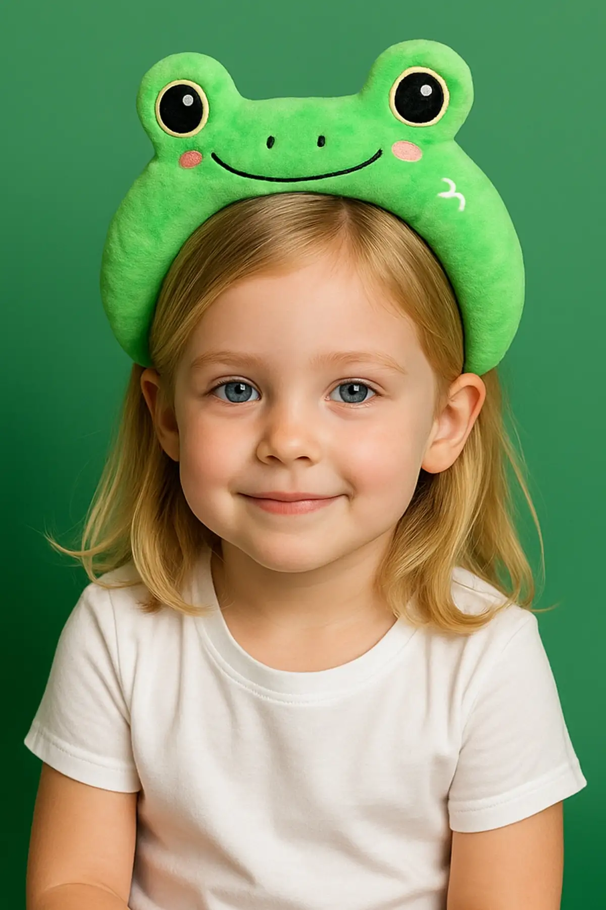 Yeşil Renk Kurbağa Figürlü Peluş Taç