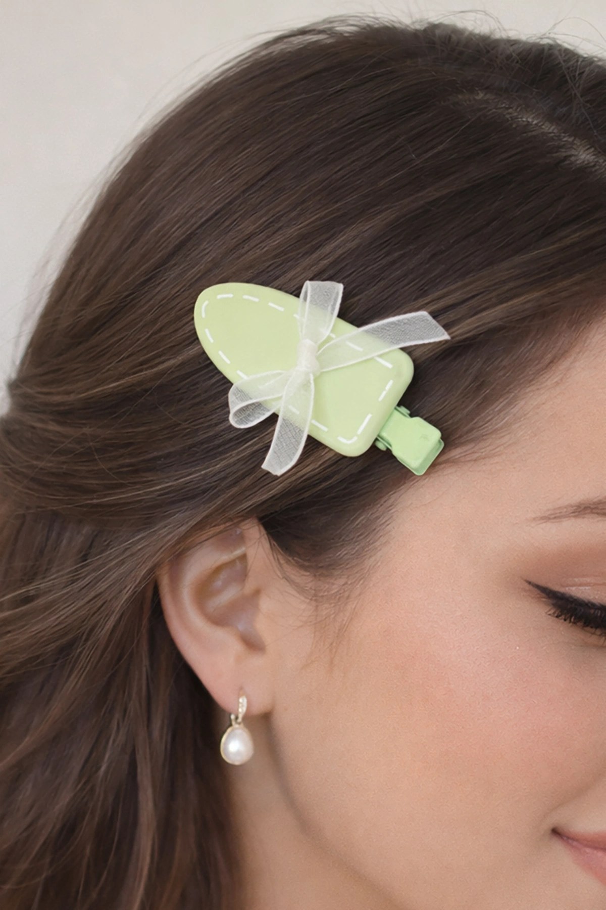 Yeşil Renk Kurdele Detaylı Yan Toka