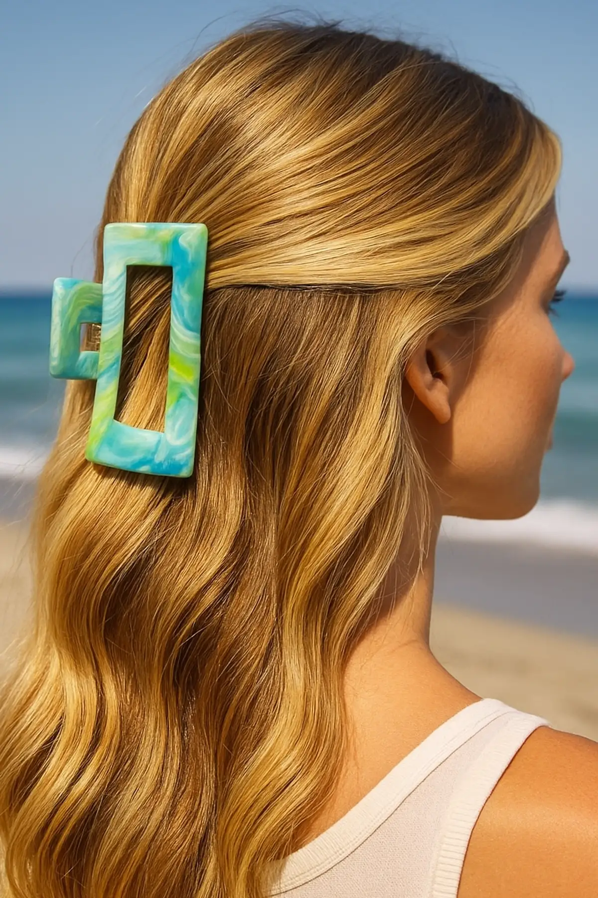 Yeşil Renk Mermer Desenli Kemik Mandal Toka