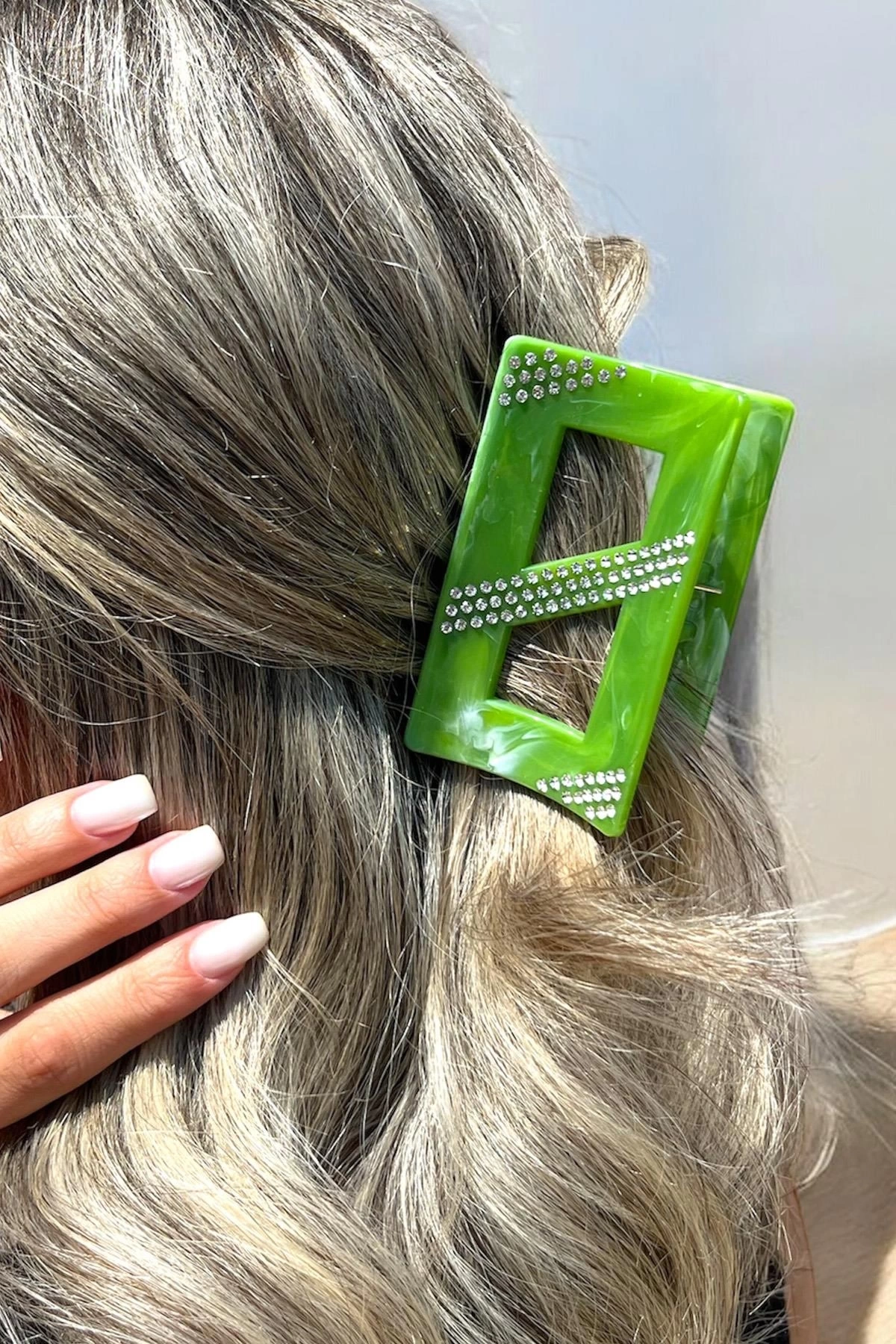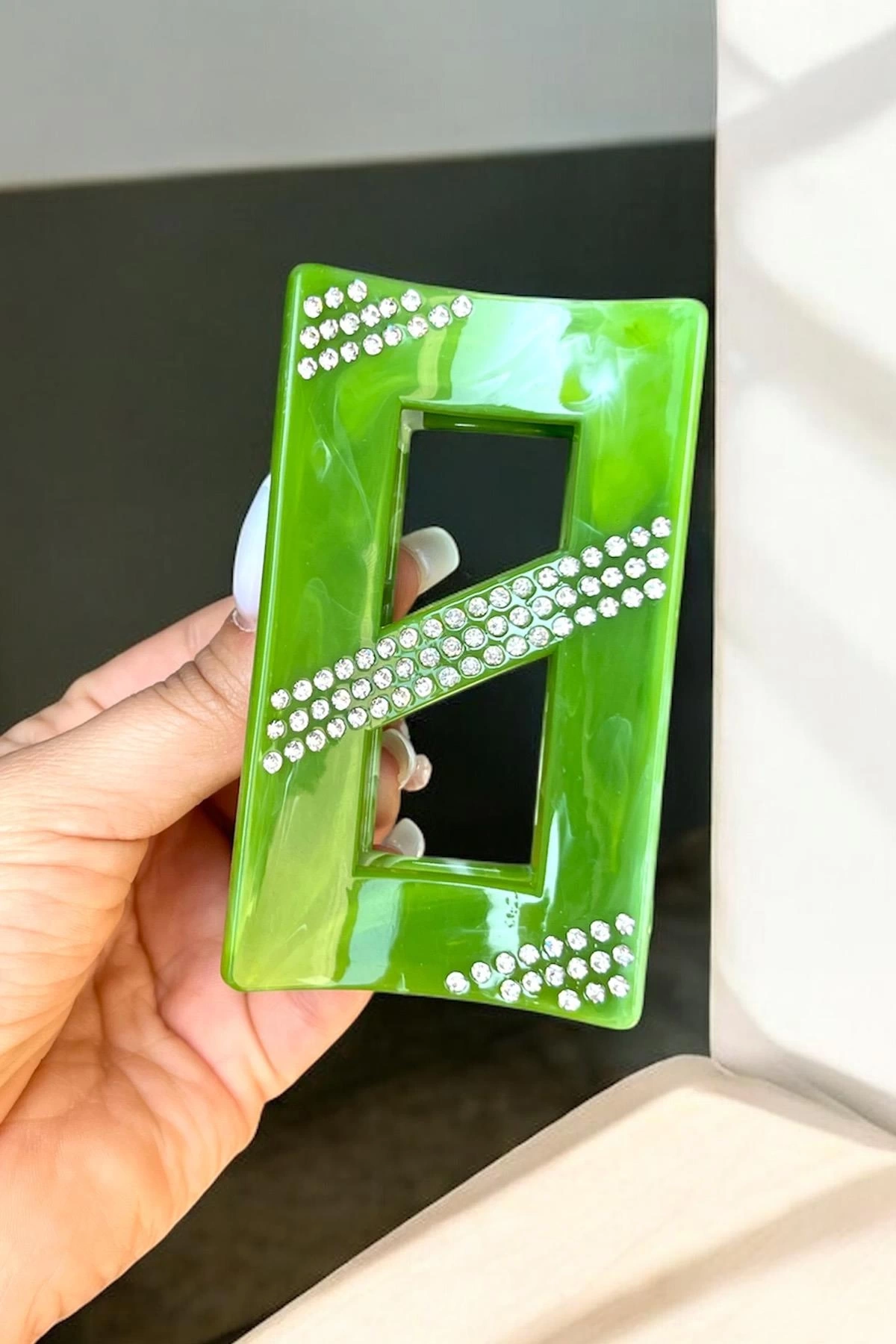 Yeşil Renk Mermer Desenli Taş Detaylı Kemik Mandal Toka