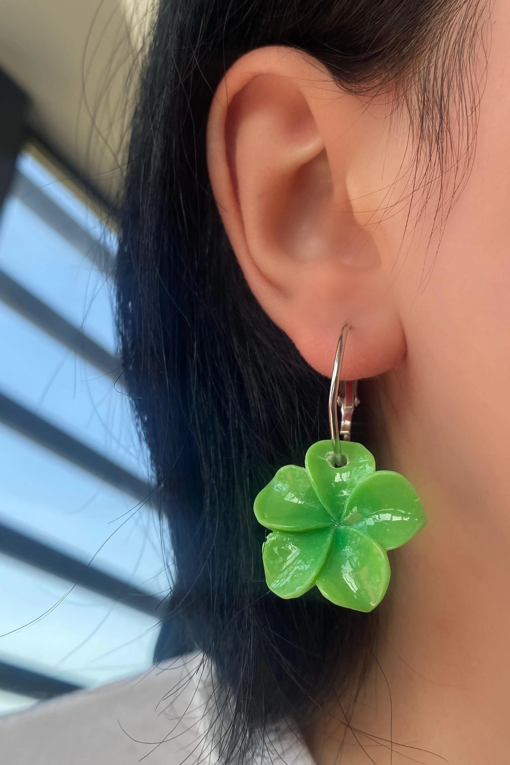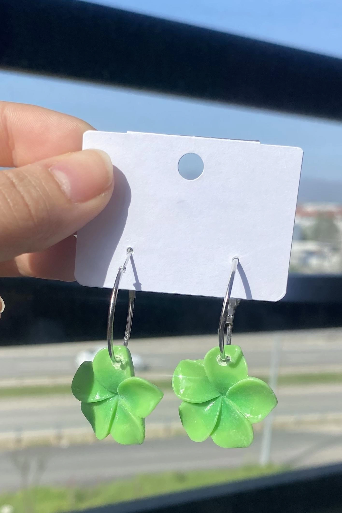 Yeşil Renk Sallantılı Lotus Küpe (Çift)