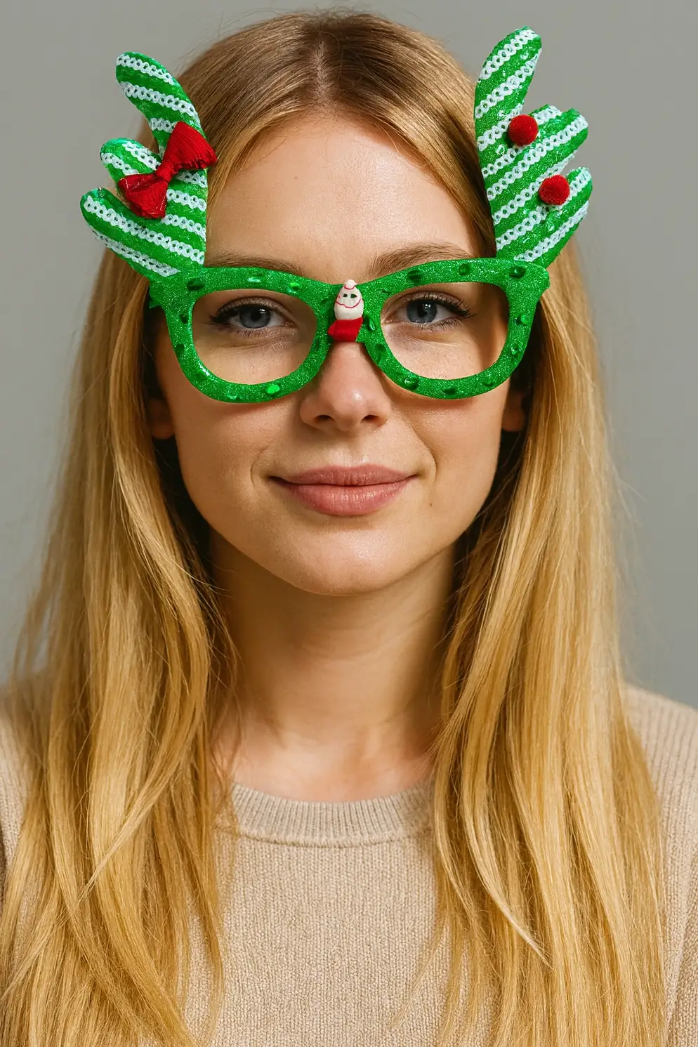 Yeşil Renk Yılbaşı Temalı Gözlük