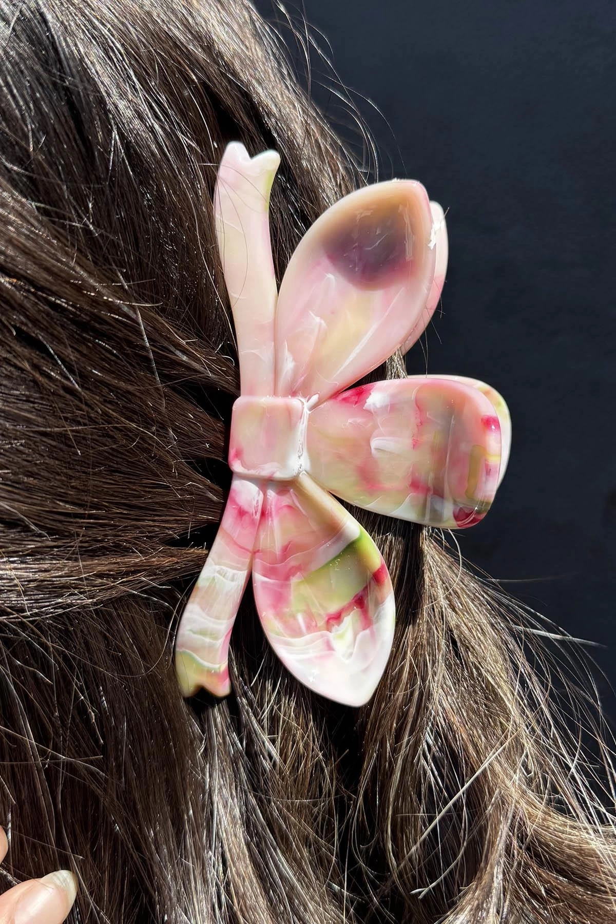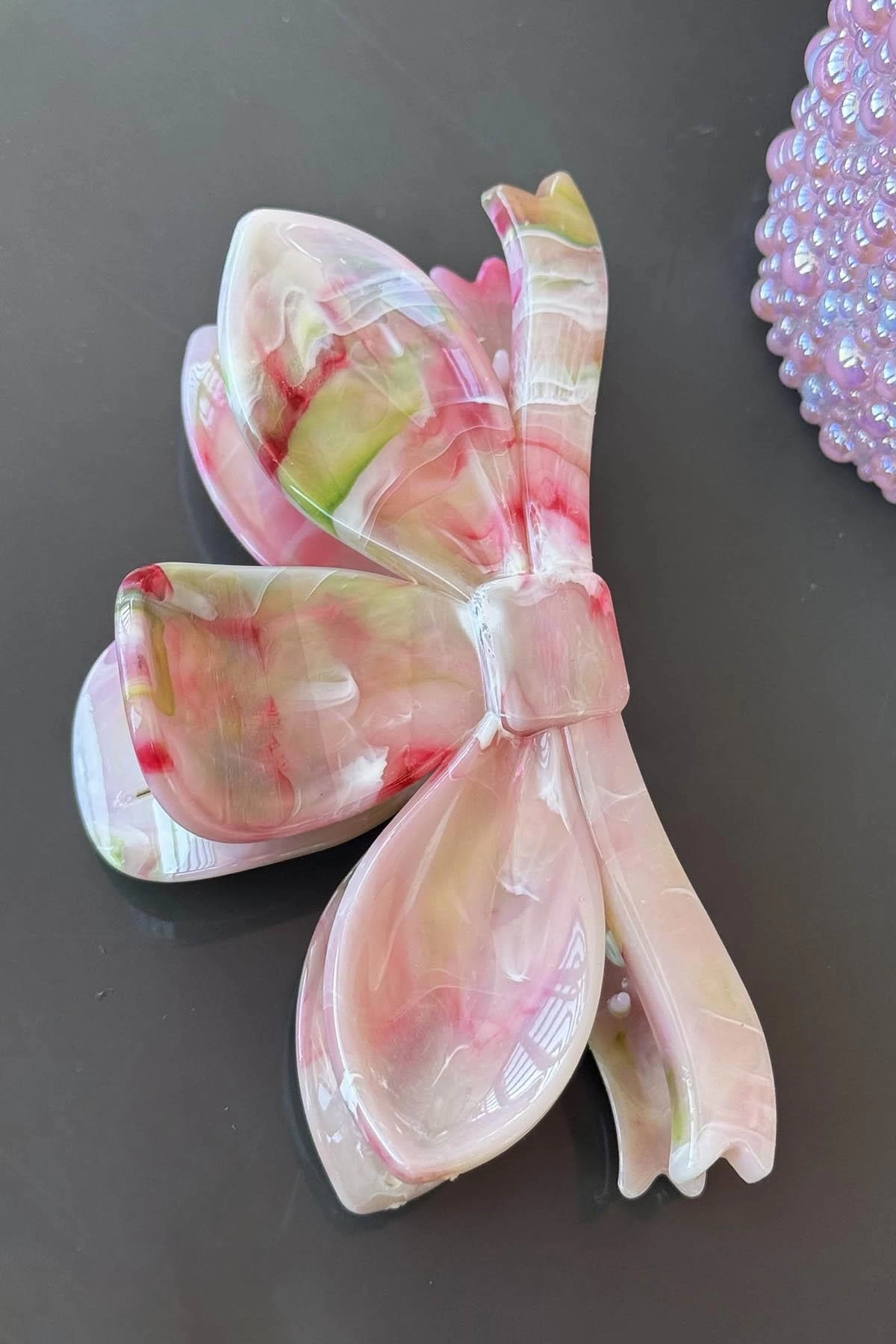 Yeşil Ve Pembe Renk Mermer Desenli Kemik Mandal Toka