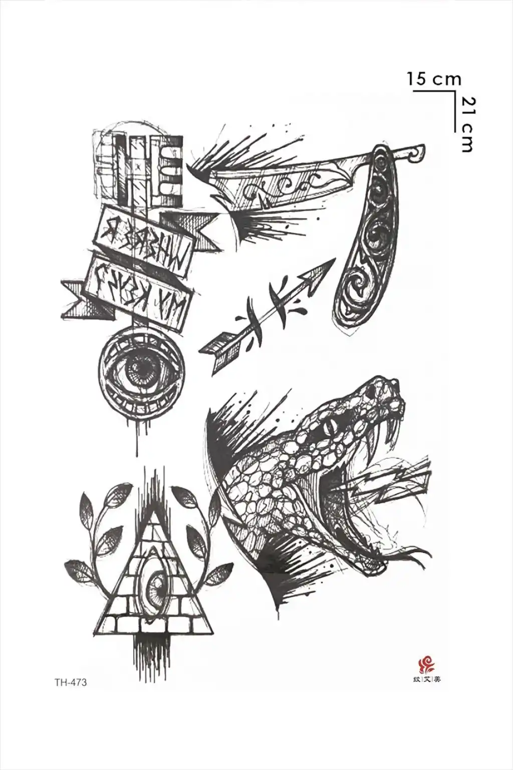 Yılan Üçgen Ok Geçici Dövme Tattoo