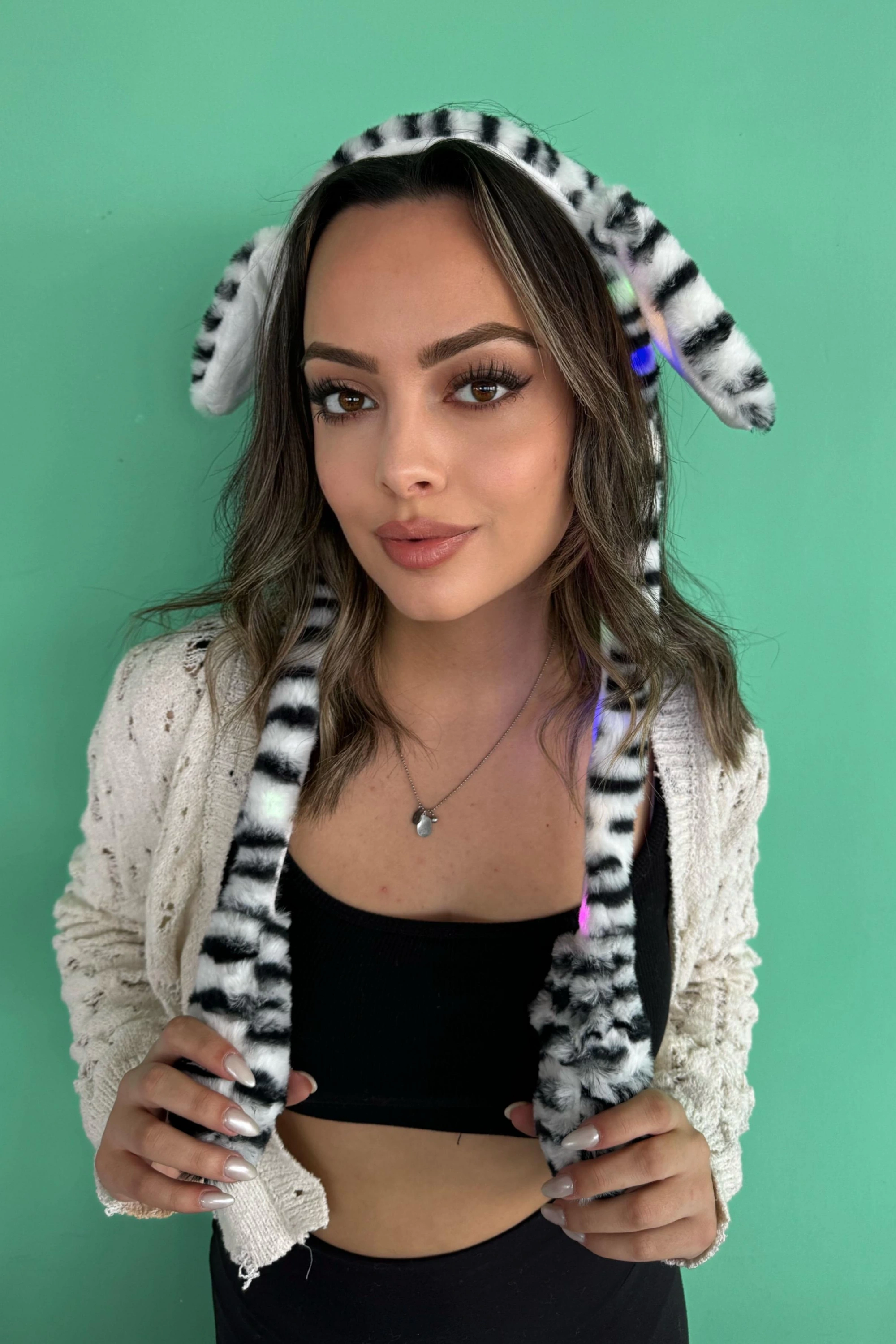 Zebra Desenli Işıklı Kulakları Oynayan Peluş Taç