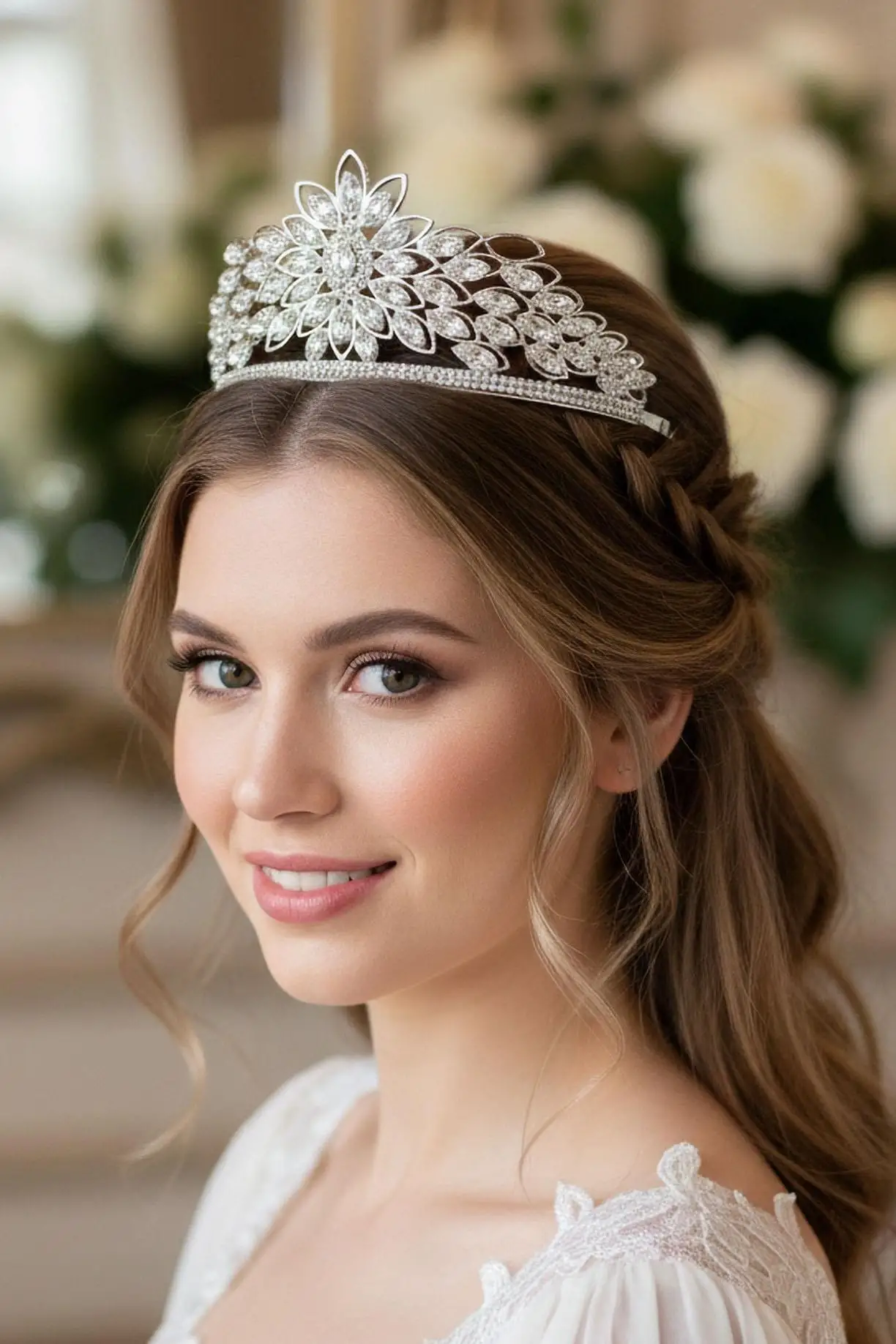 "Gelinler için zarif ve şık taşlı saç aksesuarı taç modeli. Özel günlerde saçlarınıza ışıltı katacak bu zarif tasarım, zarafet ve şıklığı bir arada sunuyor. Düğün, nişan ve özel davetler için mükemmel bir seçim!"