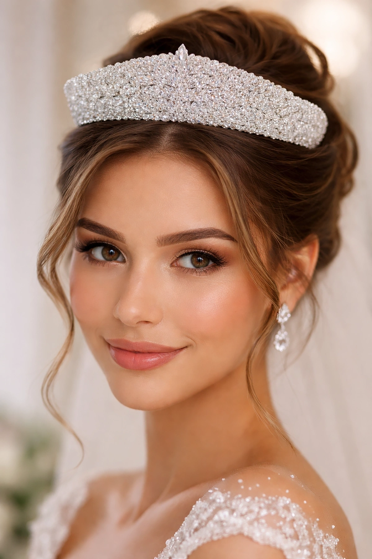 "Gelinler için zarif ve şık taşlı saç aksesuarı taç modeli. Özel günlerde saçlarınıza ışıltı katacak bu zarif tasarım, zarafet ve şıklığı bir arada sunuyor. Düğün, nişan ve özel davetler için mükemmel bir seçim!"