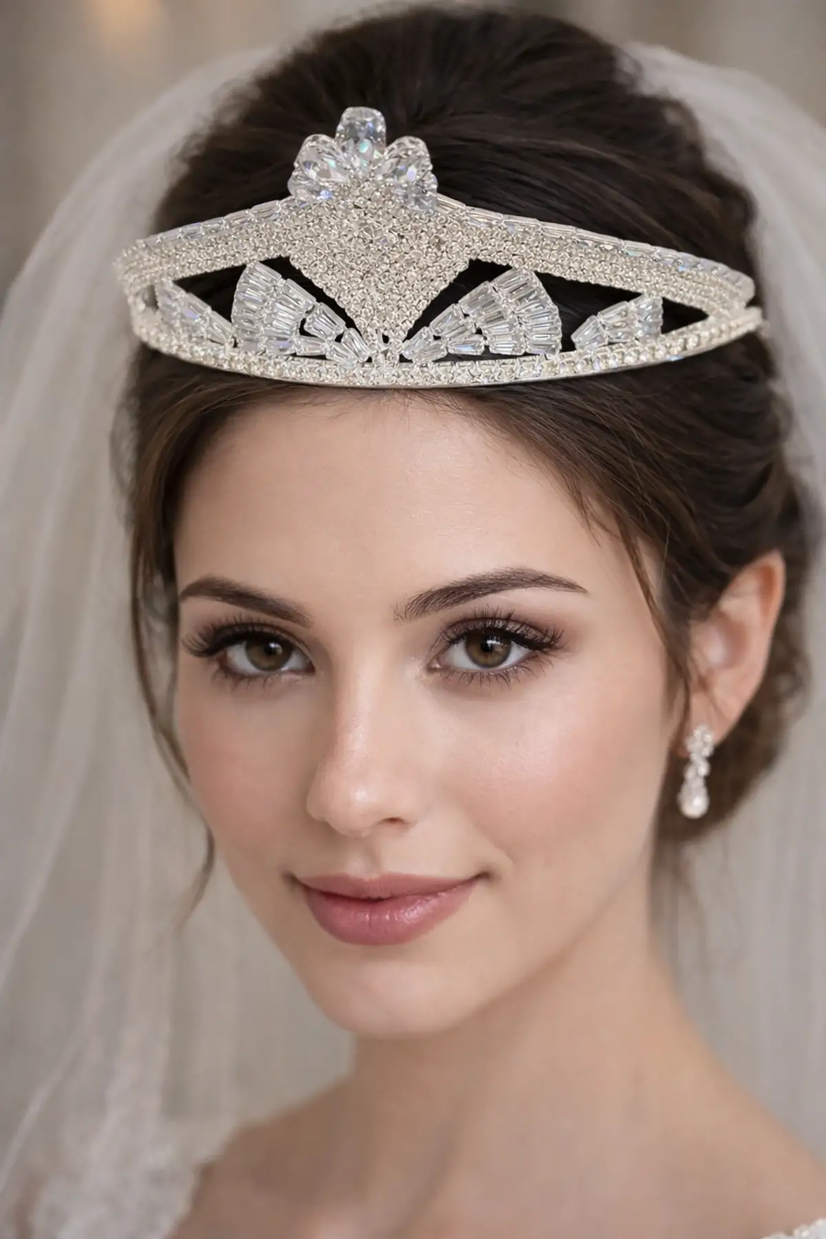 "Gelinler için zarif ve şık taşlı saç aksesuarı taç modeli. Özel günlerde saçlarınıza ışıltı katacak bu zarif tasarım, zarafet ve şıklığı bir arada sunuyor. Düğün, nişan ve özel davetler için mükemmel bir seçim!"