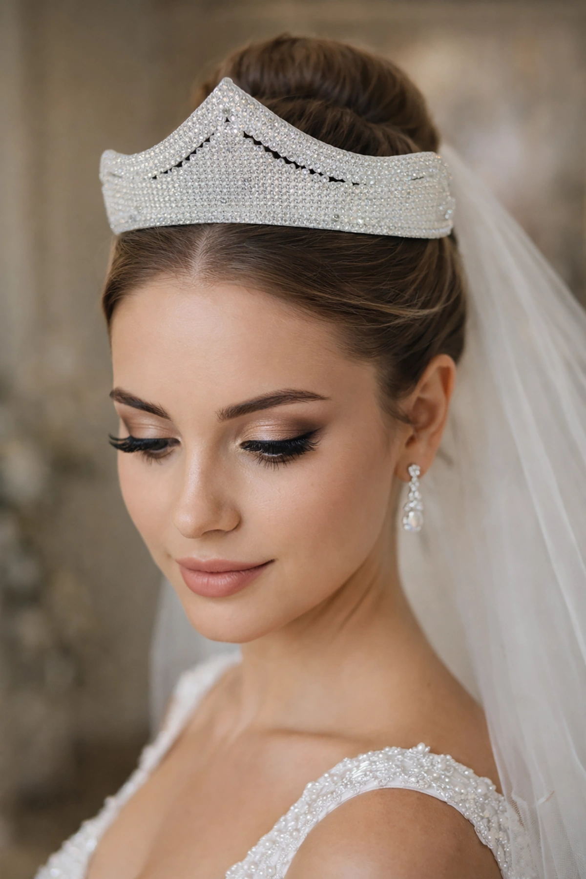 "Gelinler için zarif ve şık taşlı saç aksesuarı taç modeli. Özel günlerde saçlarınıza ışıltı katacak bu zarif tasarım, zarafet ve şıklığı bir arada sunuyor. Düğün, nişan ve özel davetler için mükemmel bir seçim!"