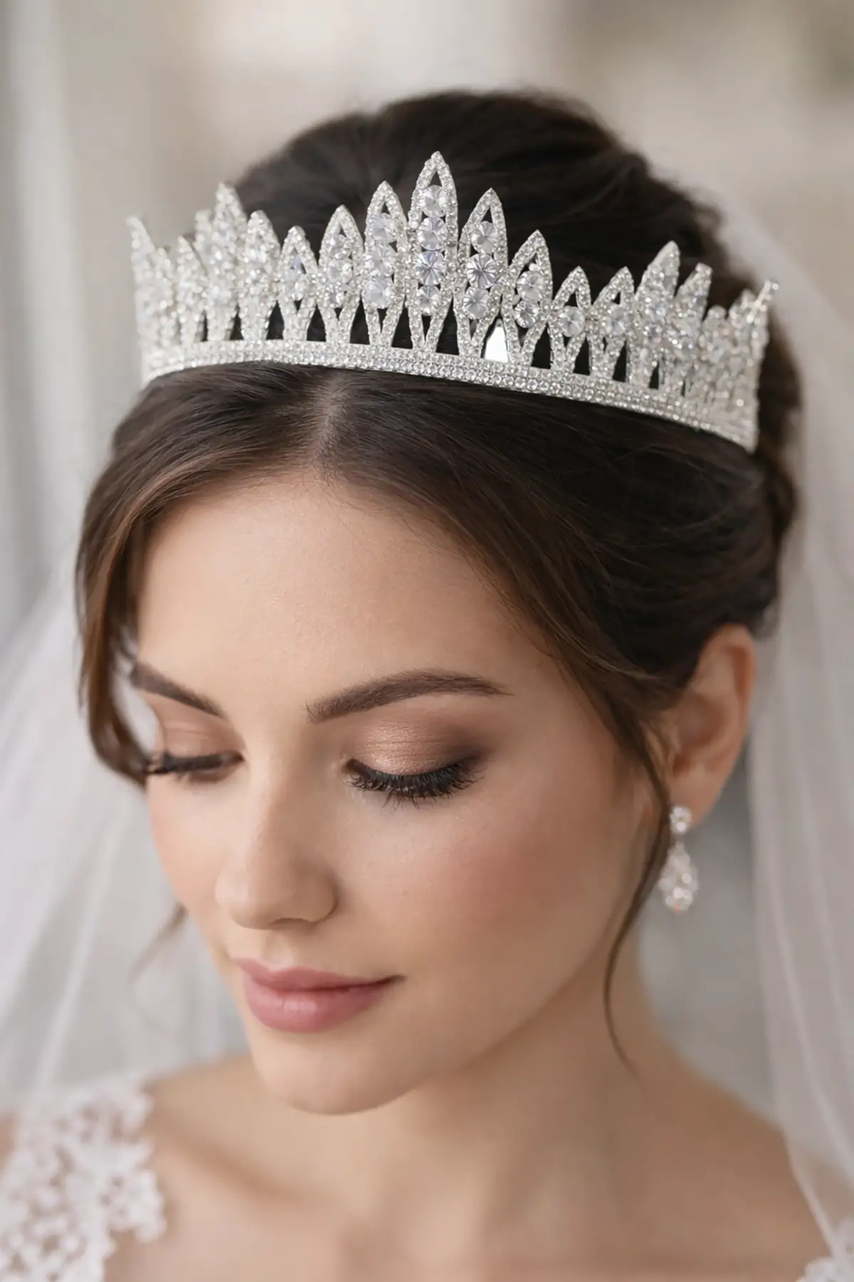 "Gelinler için zarif ve şık taşlı saç aksesuarı taç modeli. Özel günlerde saçlarınıza ışıltı katacak bu zarif tasarım, zarafet ve şıklığı bir arada sunuyor. Düğün, nişan ve özel davetler için mükemmel bir seçim!"