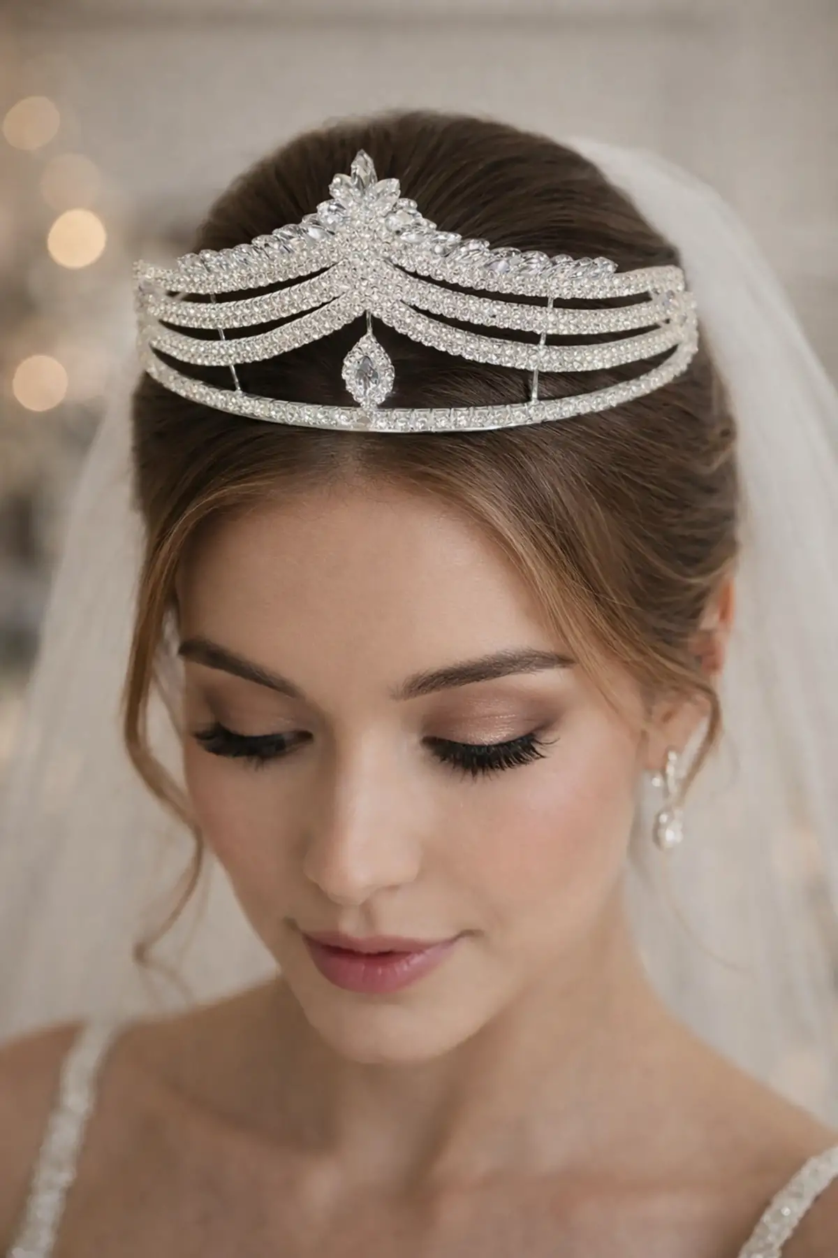 "Gelinler için zarif ve şık taşlı saç aksesuarı taç modeli. Özel günlerde saçlarınıza ışıltı katacak bu zarif tasarım, zarafet ve şıklığı bir arada sunuyor. Düğün, nişan ve özel davetler için mükemmel bir seçim!"